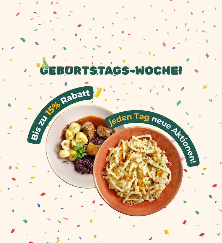 Um Deinen Warenkorb zu füllen, wähle eine fertige Themenbox aus oder erstelle Dir deine individuelle 8er Box mit ausgewählten Gerichten.