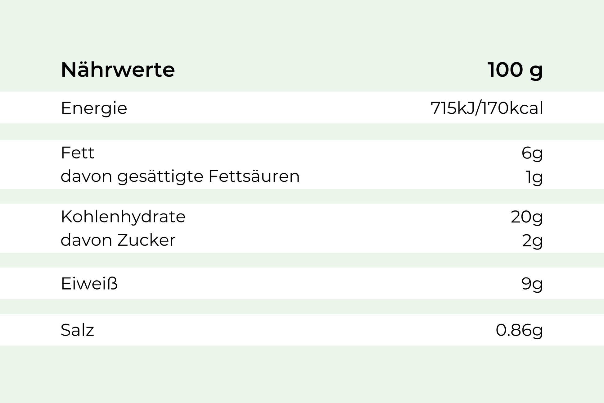 AUSZUG AUS DEN NÄHRWERTEN / 100 G Brennwert: 170 kcal