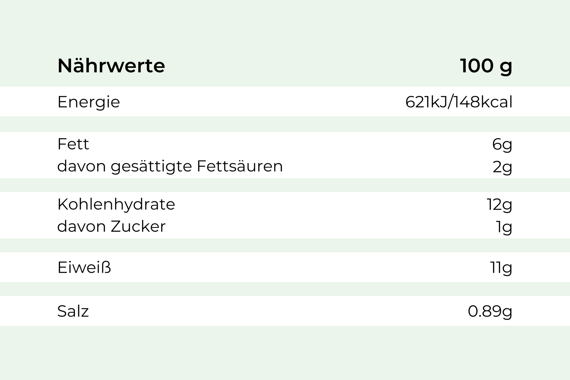AUSZUG AUS DEN NÄHRWERTEN / 100 G Brennwert: 148 kcal